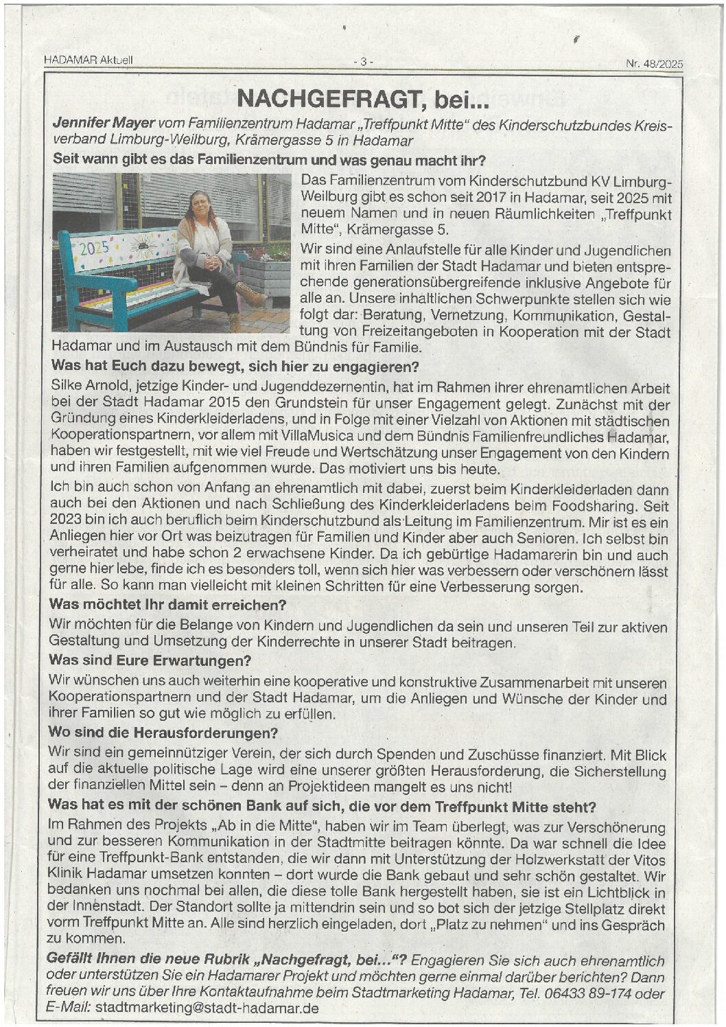 Interview mit Jennifer Mayer – Familienzentrum Hadamar